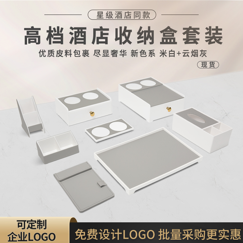 酒店客房皮具组合用品遥控座多功能纸巾盒桌面遥控器皮革收纳盒