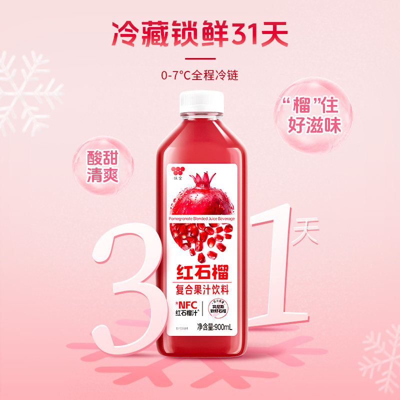 味全红石榴芭乐青提复合冷藏饮品饮料浓缩果汁NFC900ml瓶新品组