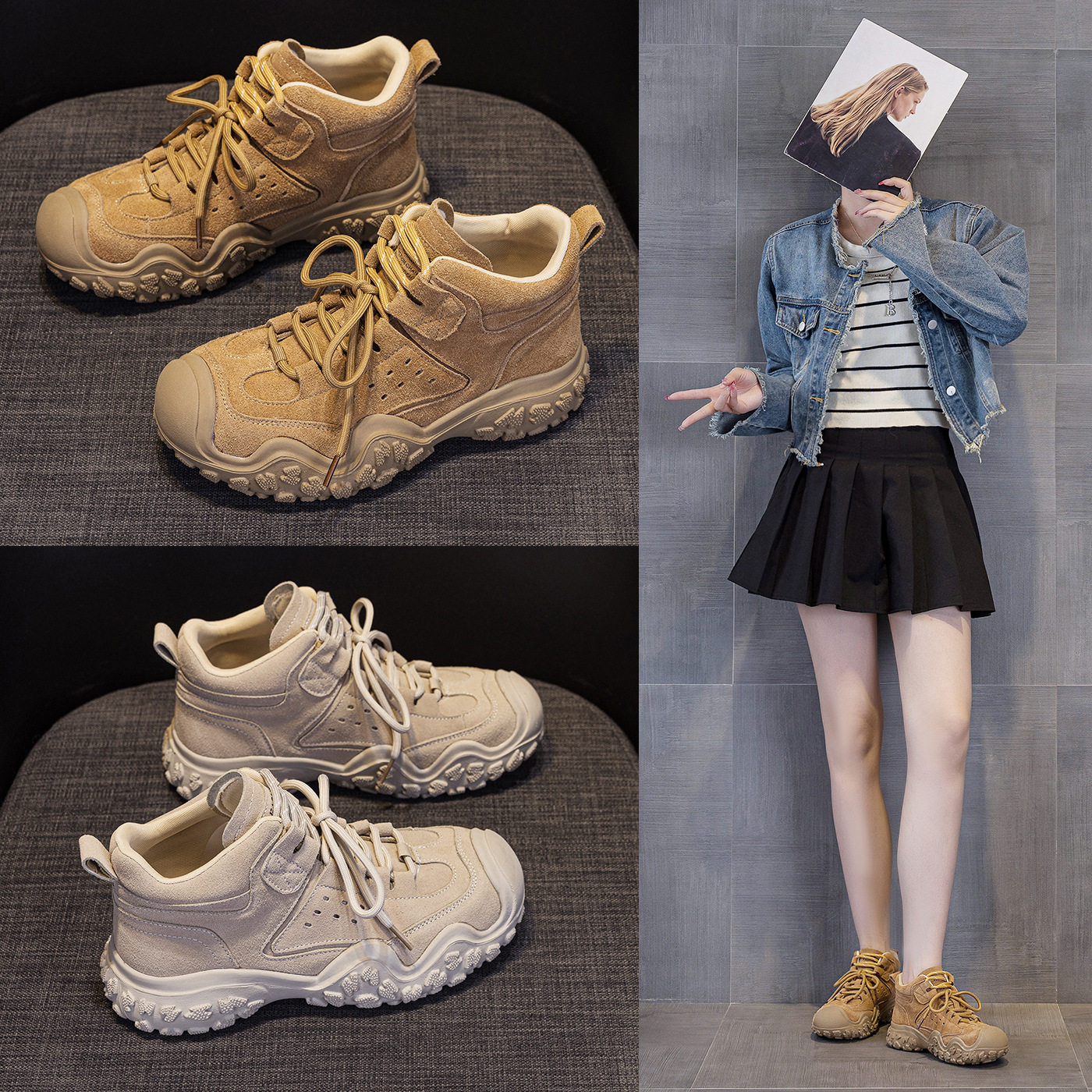 厚底马丁靴女短靴真皮户外徒步靴