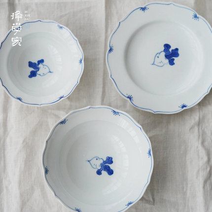 择学家景德镇手绘青花葵口边碗碟