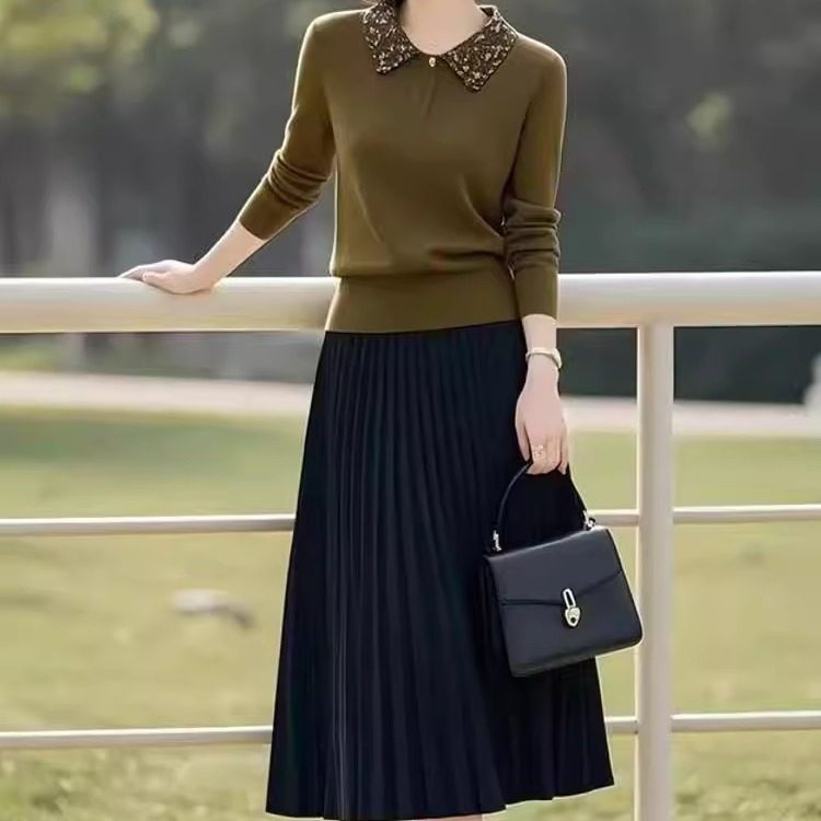 素雅订制女装原创品牌2025秋季新款针织衫上衣百褶半身裙两件套装