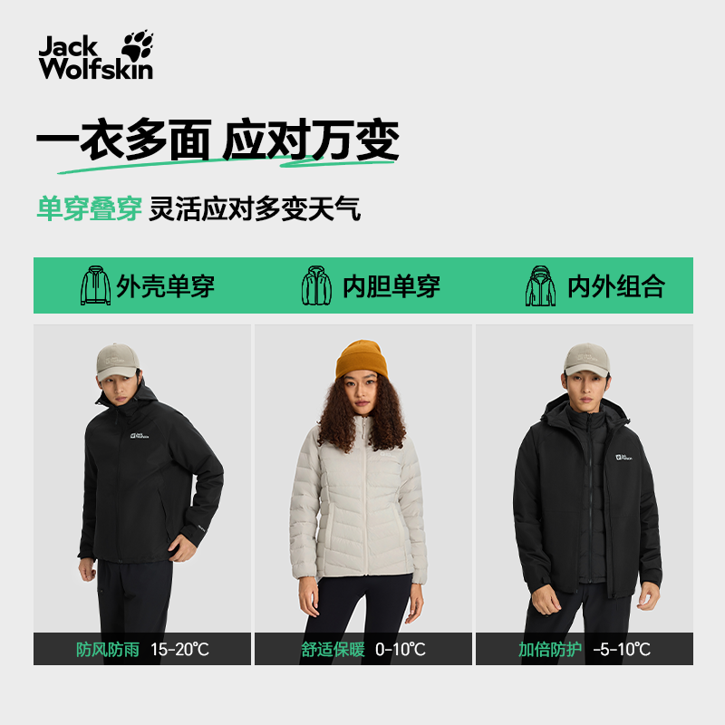 狼爪户外防风防水鹅绒三合一
