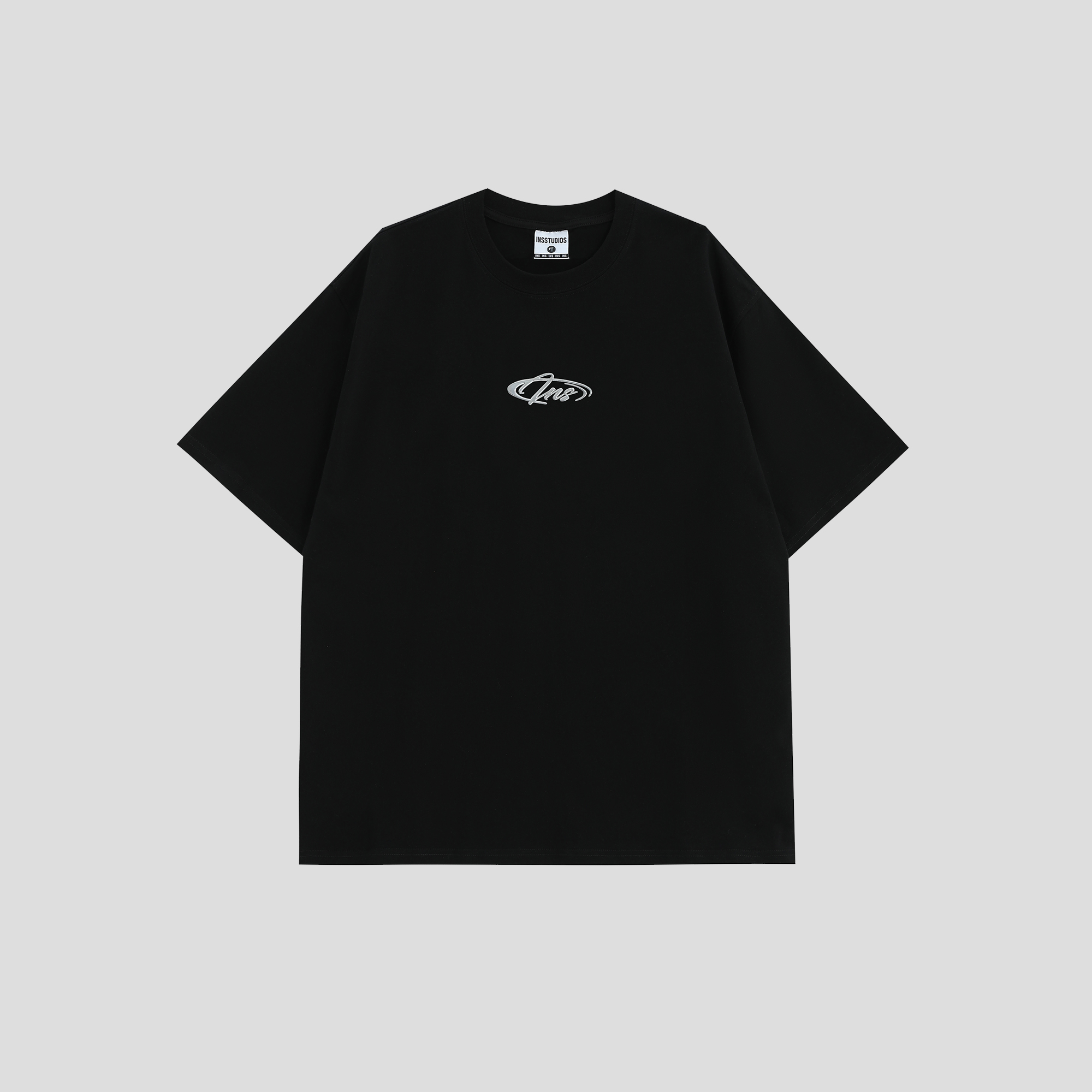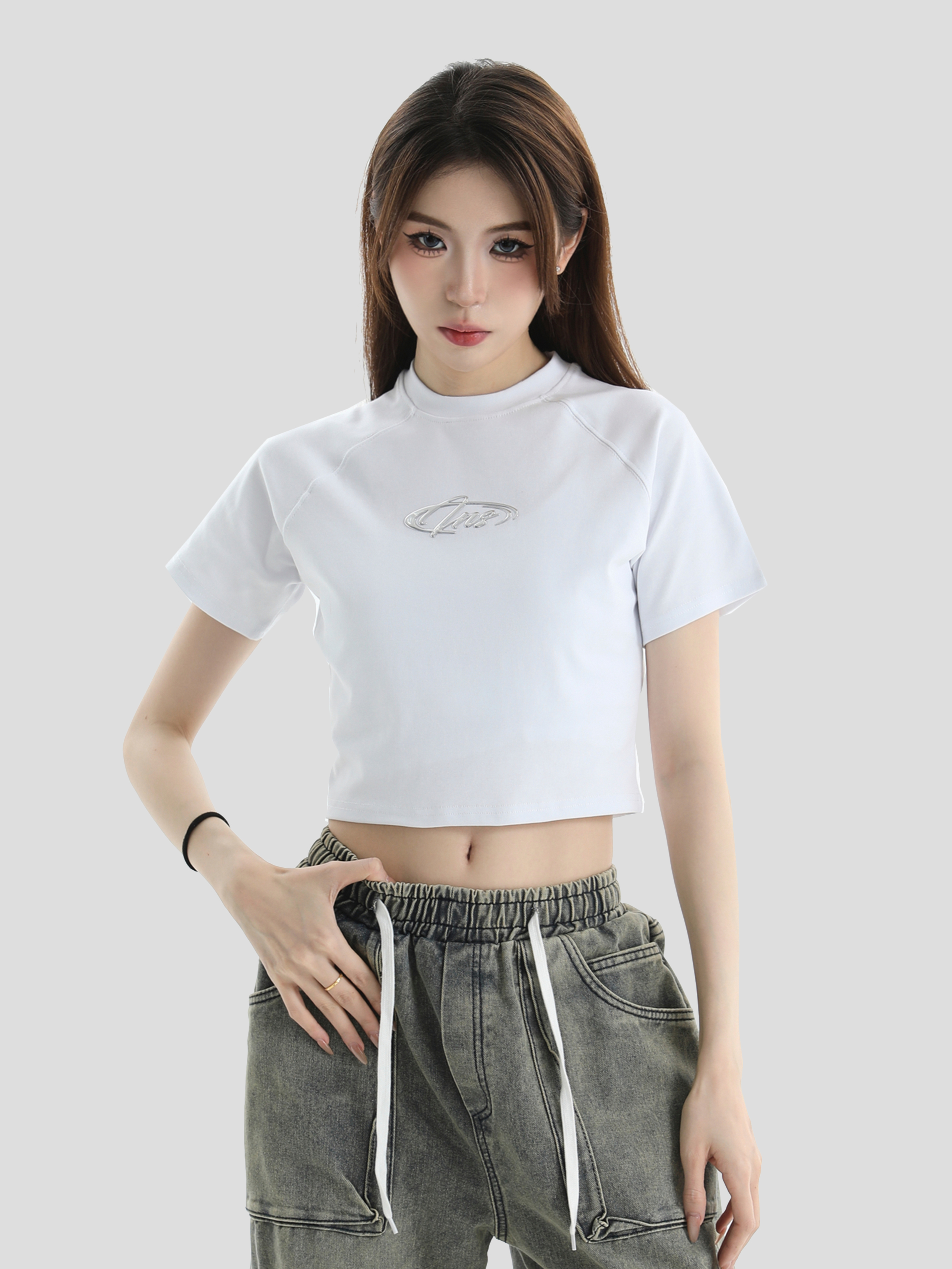 INSstudios 国潮牌情侣美式液态金属LOGO短袖辣妹正肩紧身短款T恤