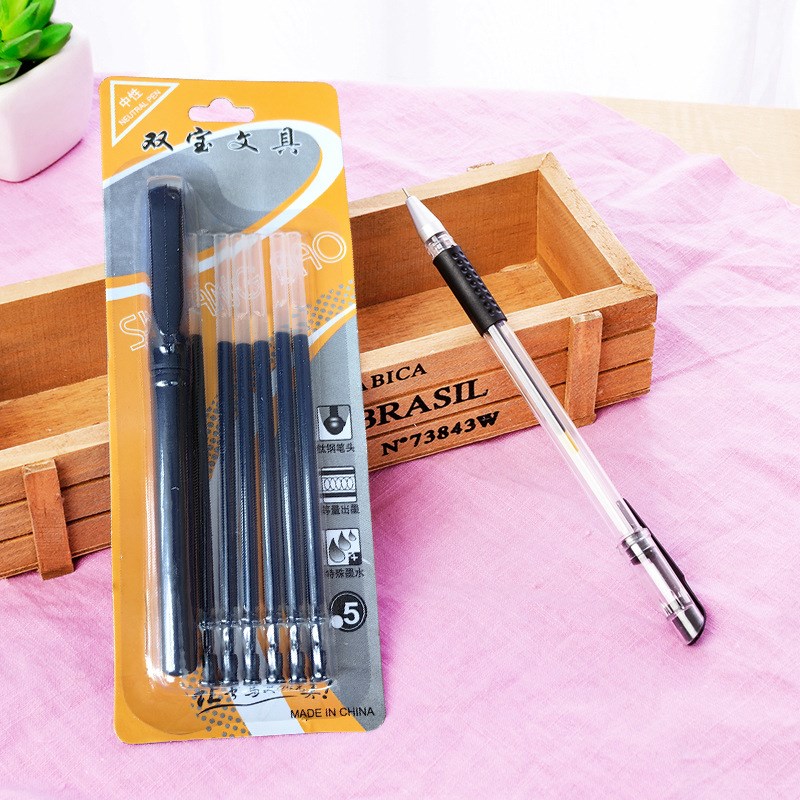 15套黑色中性笔学生文具中性笔套装黑色水笔1笔6芯0.5mm水性笔