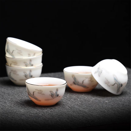 茶具茶杯品茗单杯陶瓷羊脂玉白功夫小泡茶喝茶套装4只待客厅办公6