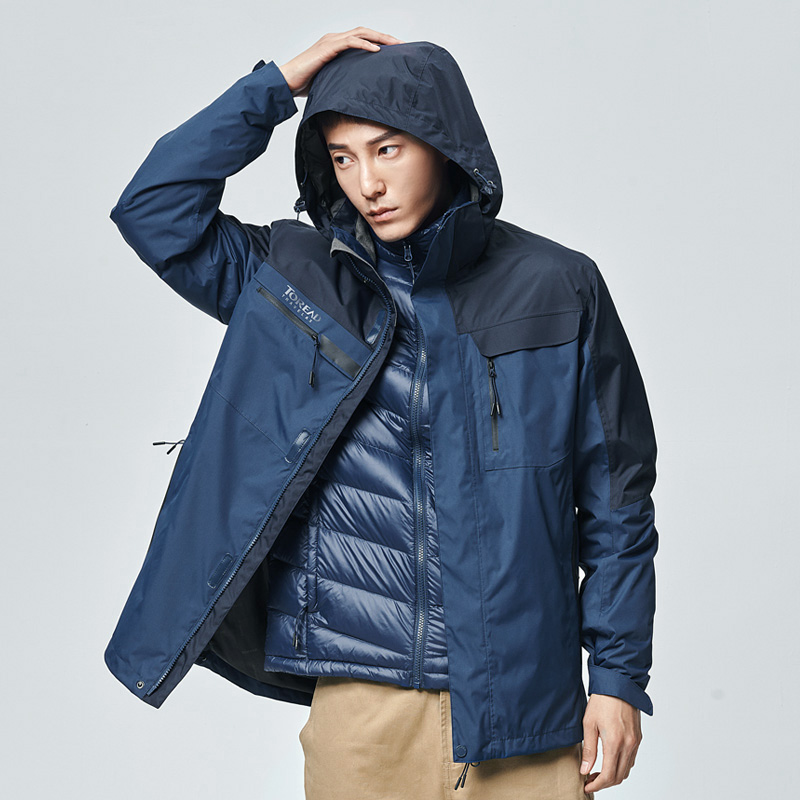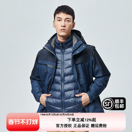 探路者冲锋衣男三合一可拆卸羽绒内胆外套户外防风滑雪加厚登山服