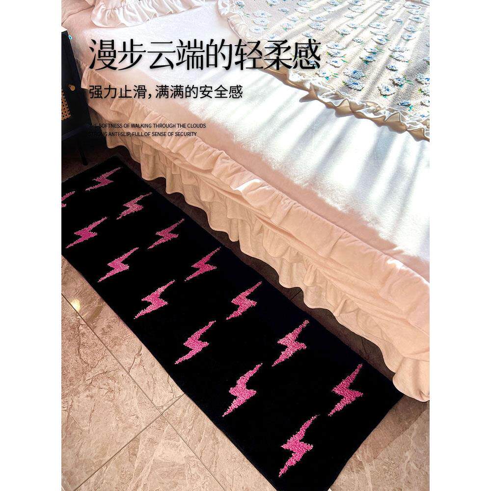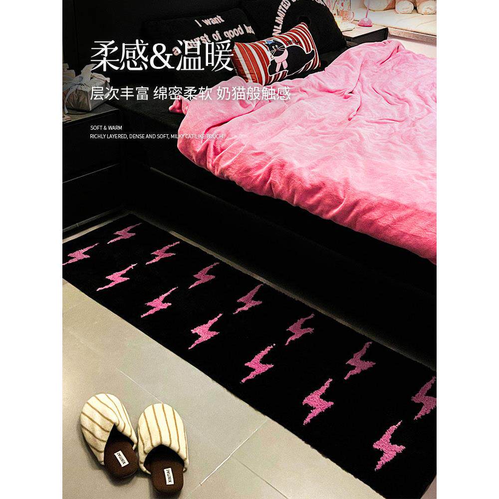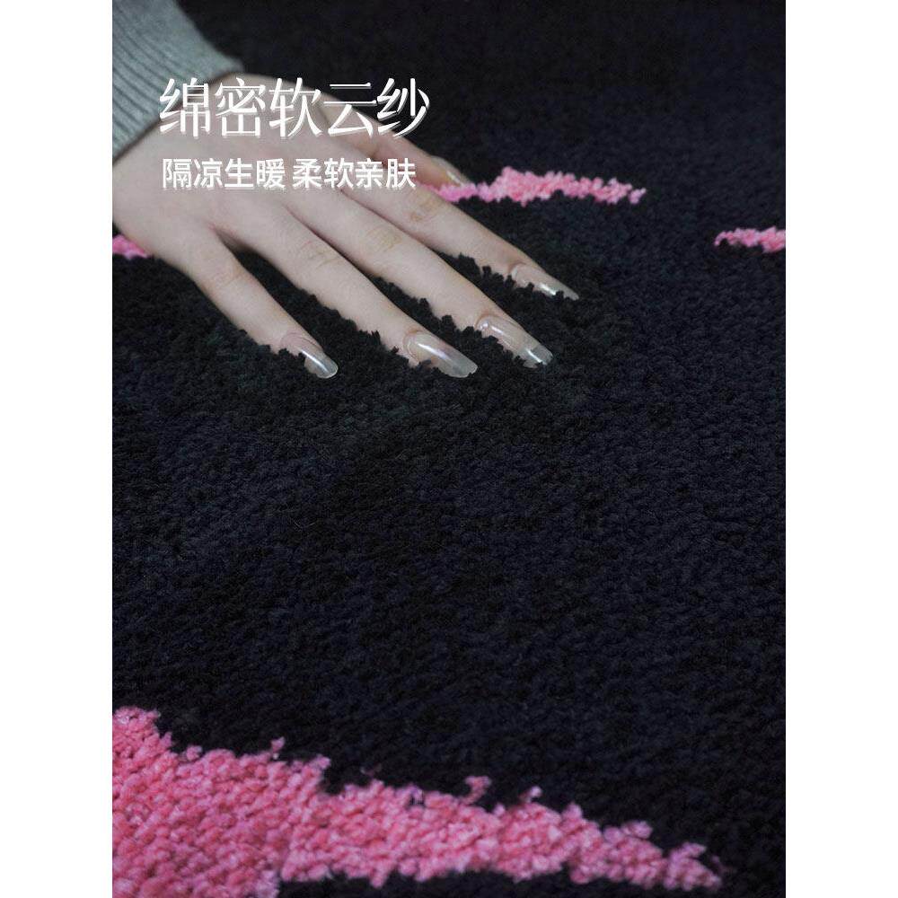机织地毯儿童房客厅床边地毯卧室暖甜粉黑配色地毯床边毯防滑地毯