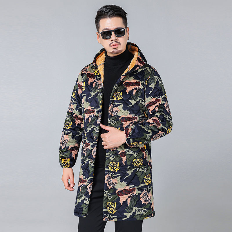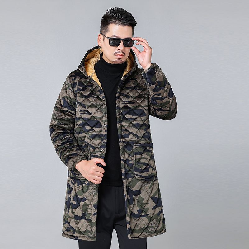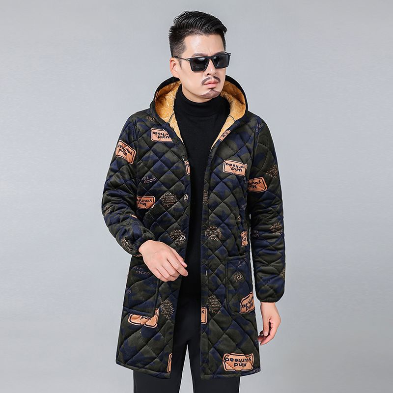 四川省服冬季加厚长款棉衣男加绒棉袄休闲宽松耐脏工作服连帽外套