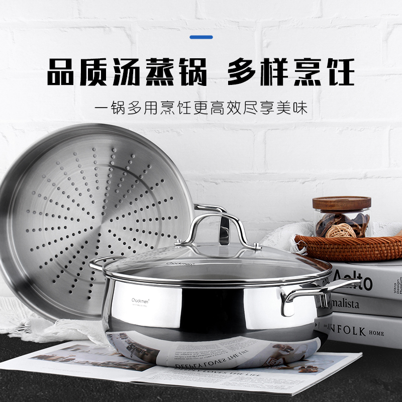 Chockmen卓德铭18/10不锈钢蒸锅家用蒸煮多规格双层蒸笼火锅汤锅