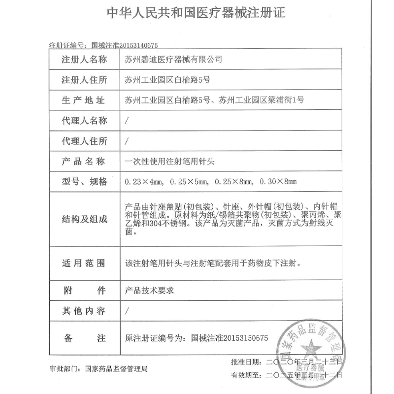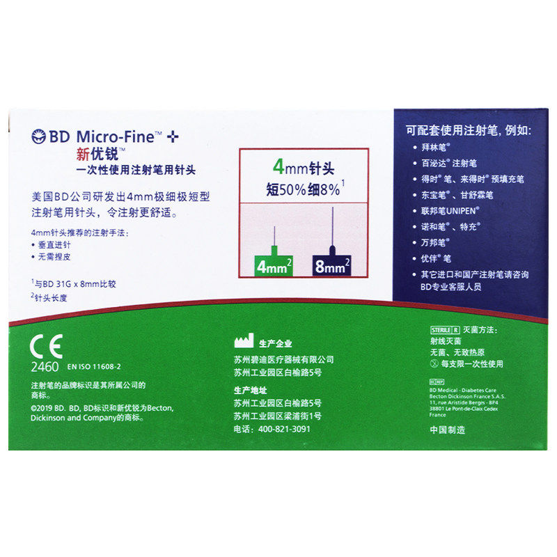 BD新优锐胰岛素针头0.23*4mm 一次性注射笔针头 诺和甘李舒霖通用