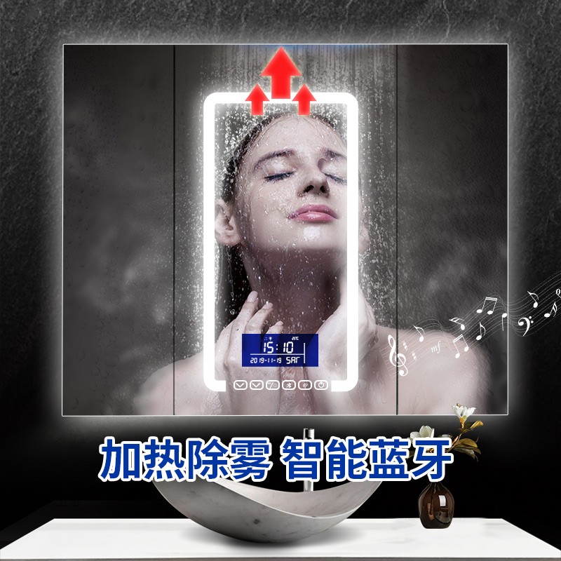 智能除雾浴室镜柜不锈钢带灯卫生间挂墙式单独小户型带置物架镜箱