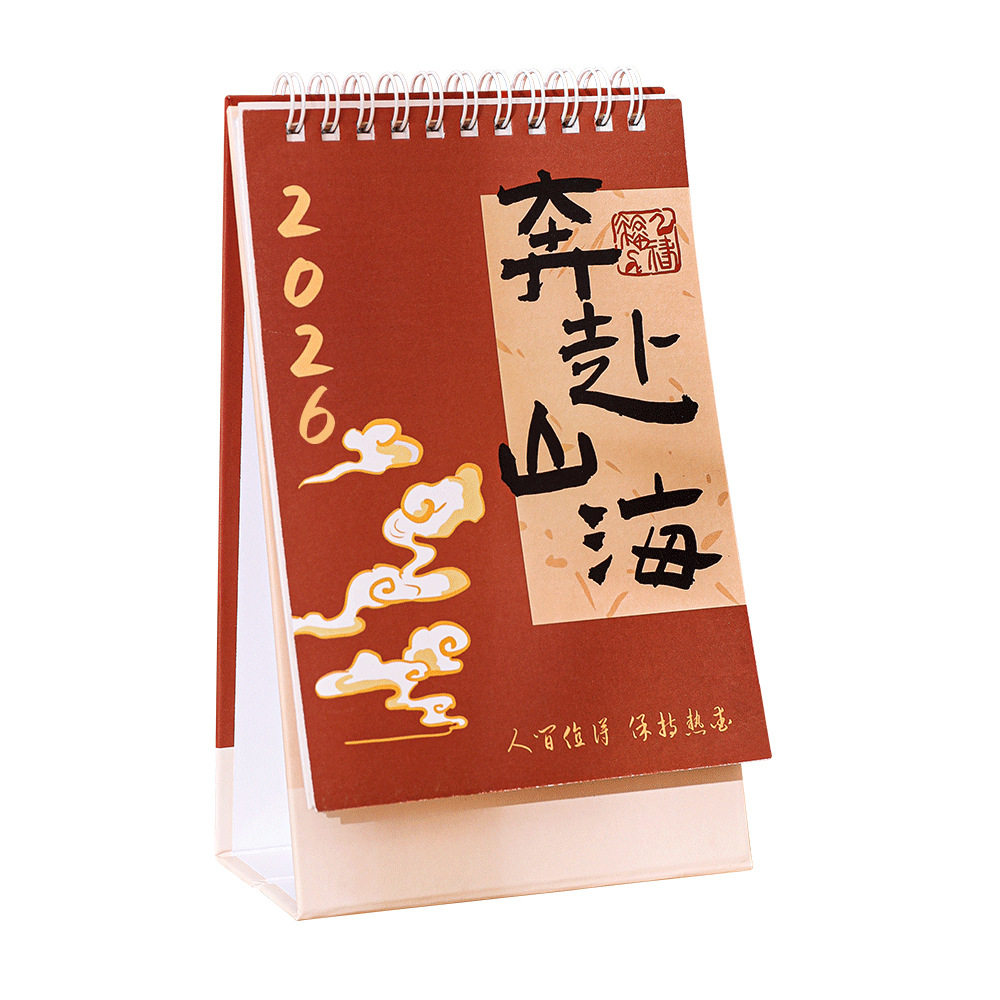 2026年励志文字台历打卡计划桌面摆件年月历古风复古加厚线圈单面