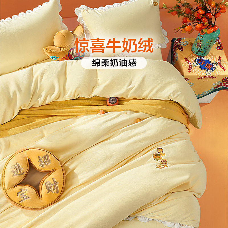 富安娜牛奶绒床上四件套