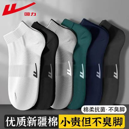 回力100%正品袜子男短袜7A抗菌纯色新疆棉防臭夏季薄款不掉跟船袜