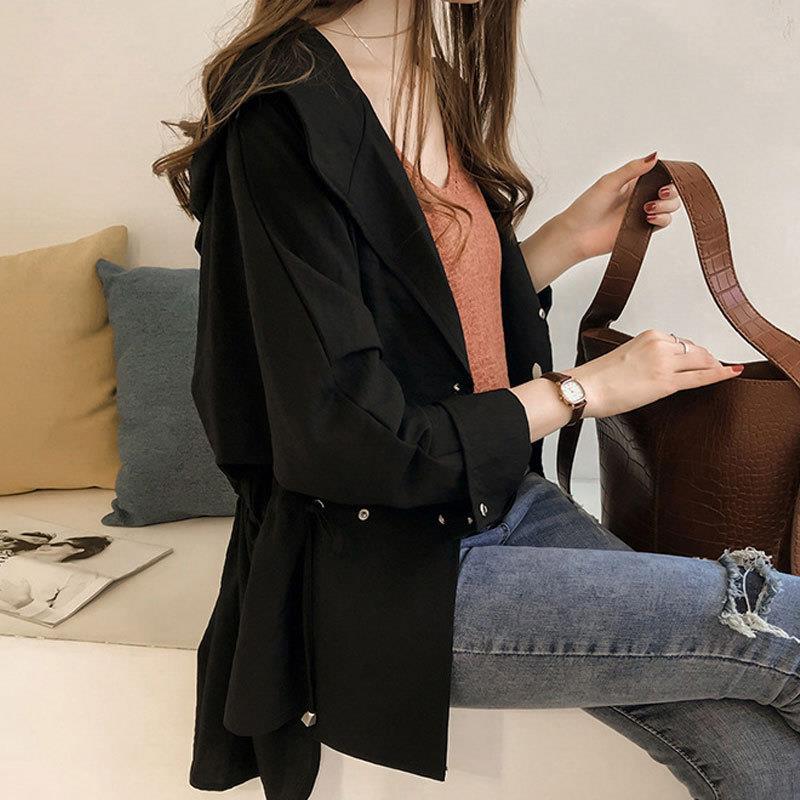 初秋女装新款2024韩国宽松bf连帽风衣女中长款休闲长袖开衫外套