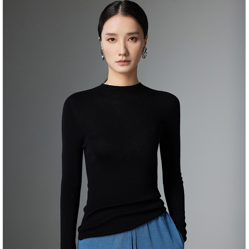 鄂尔多斯市可机洗一线成衣羊绒打底衫女半高领修身轻薄针织羊毛衫