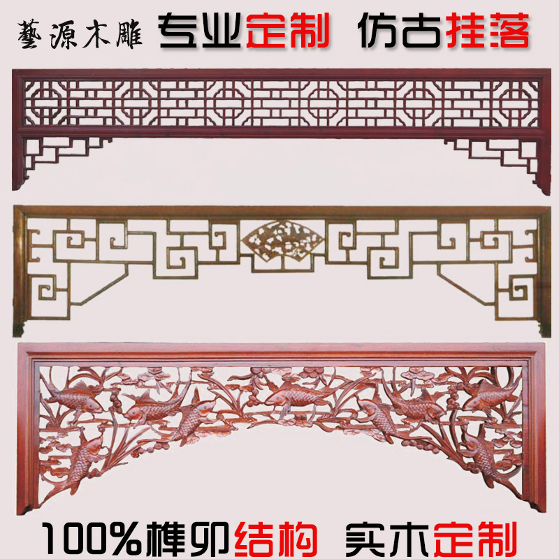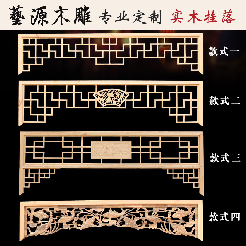 东阳木雕中式仿古实木雕刻背景墙挂落门楣实木门窗隔断屏风玄关