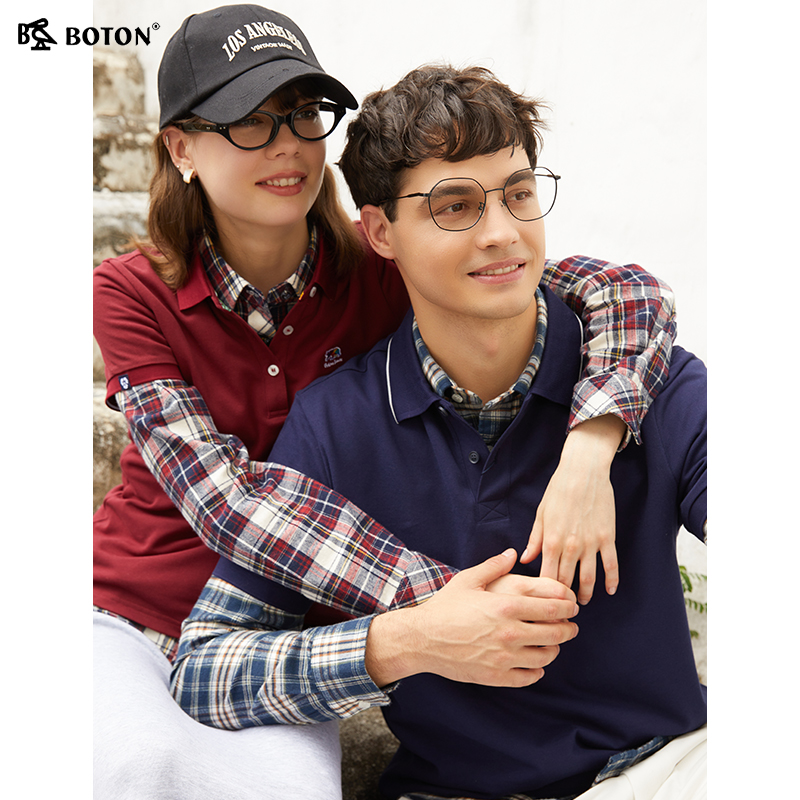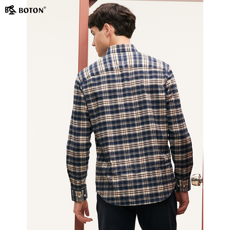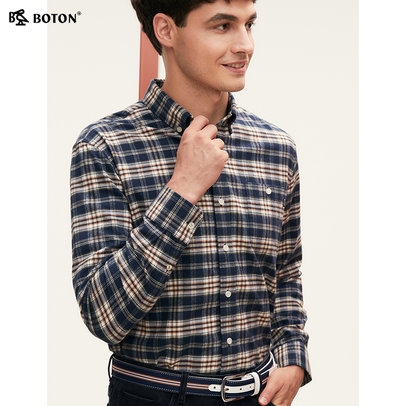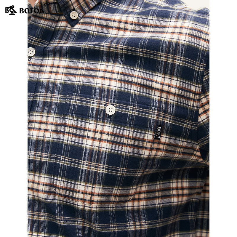 波顿2025秋季新款蓝绿棕白色长袖男士格子衬衫高端美式休闲衬衣