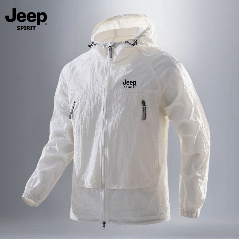 吉普防晒衣男士夏季薄款防紫外线连帽皮肤衣男款宽松休闲运动外套