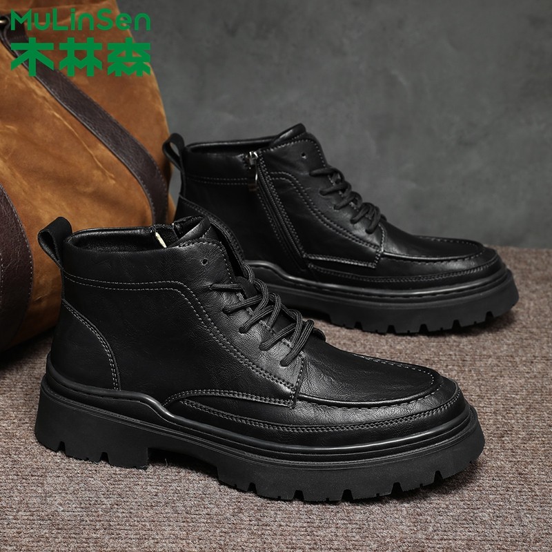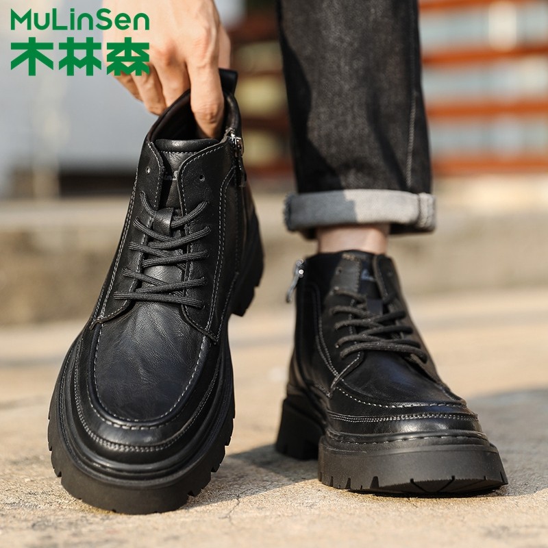 木林森马丁靴男款2025新款冬季厚底增高百搭休闲鞋男士时尚高帮靴