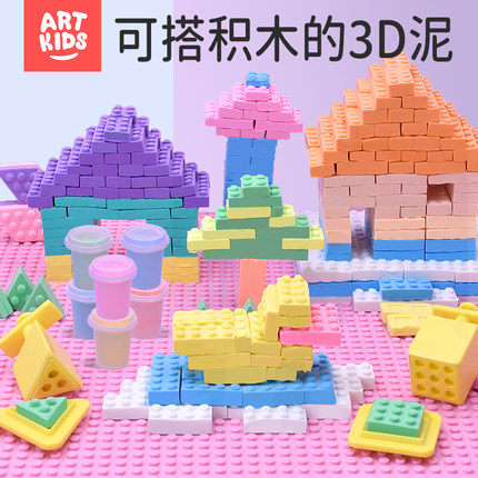 艺启乐解压3D积木泥儿童橡皮彩泥太空超轻粘土过家家玩具沙套装