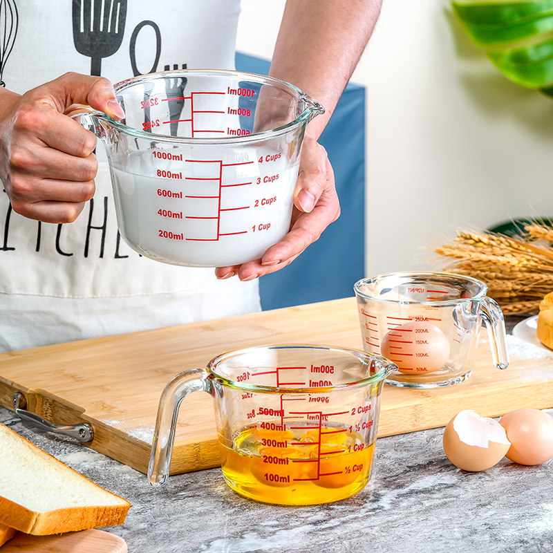 牛奶杯量杯刻度水杯量杯儿童家用玻璃杯子宝宝喝奶杯微波炉早餐杯