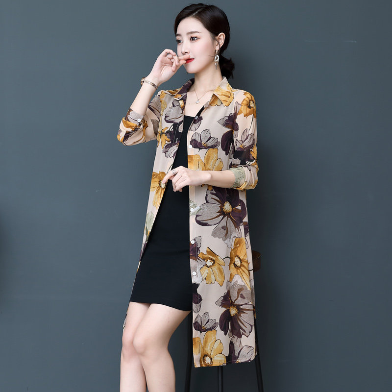 条纹防晒衣服女2023新款夏季长袖薄款外套中长款雪纺披肩外搭开衫