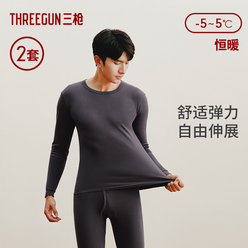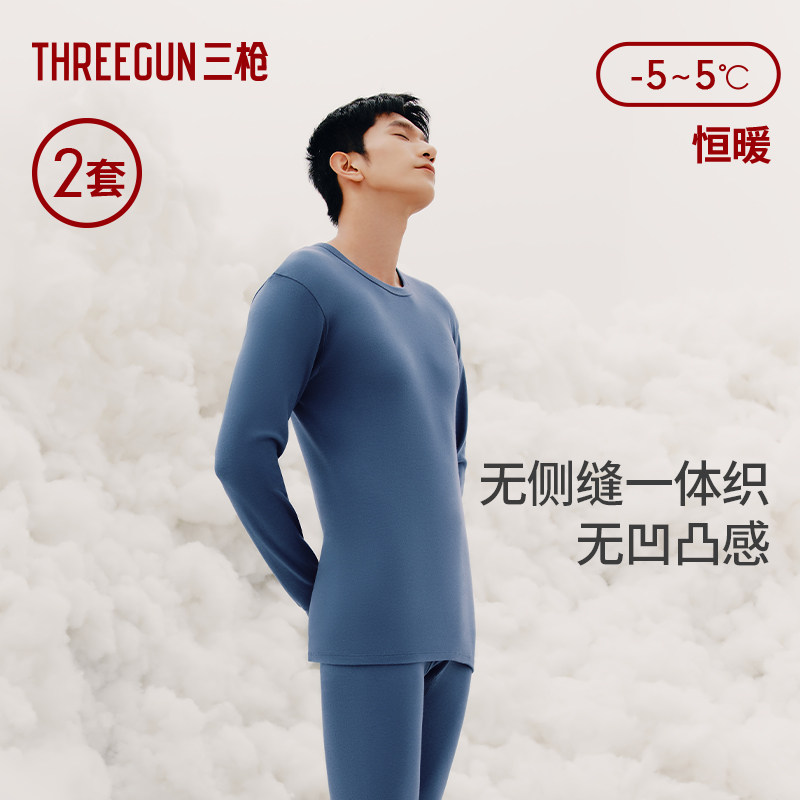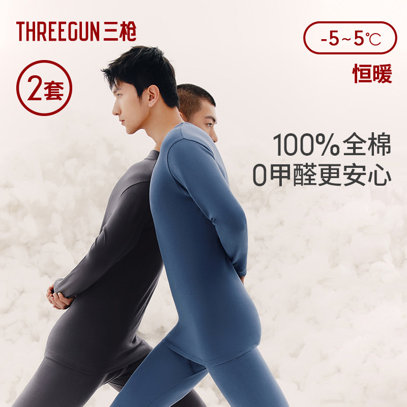[2套装]三枪保暖内衣男纯棉抗静电秋衣秋裤半高领无侧缝厚棉打底
