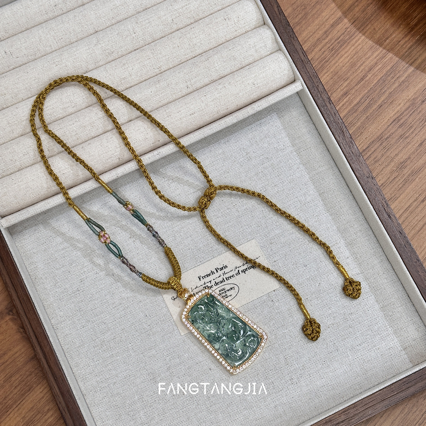 方糖家翡翠方牌编绳新中式项链