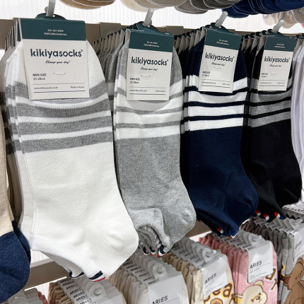 kikiya简约吸汗春男条纹进口短袜