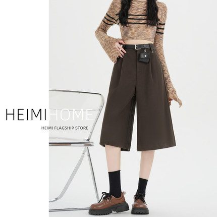 咖色毛呢休闲裤女秋冬季加厚高腰外穿阔腿靴裤小个子直筒七分裤子
