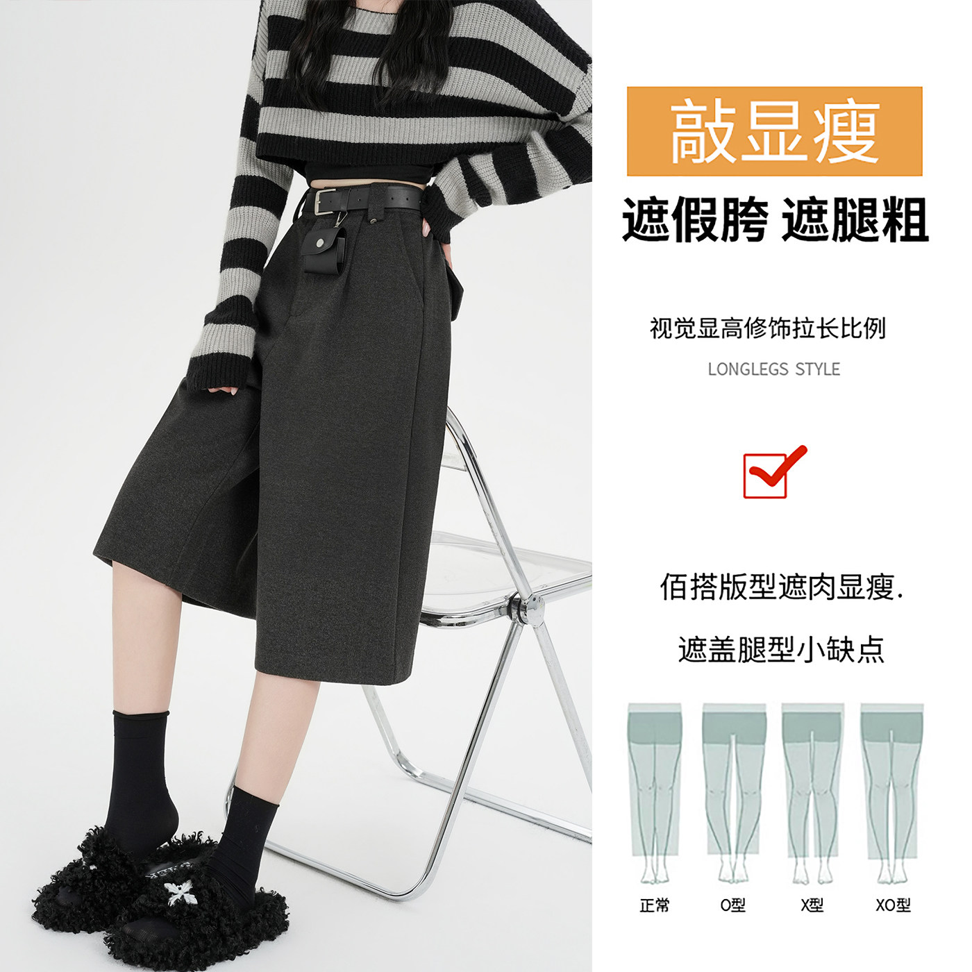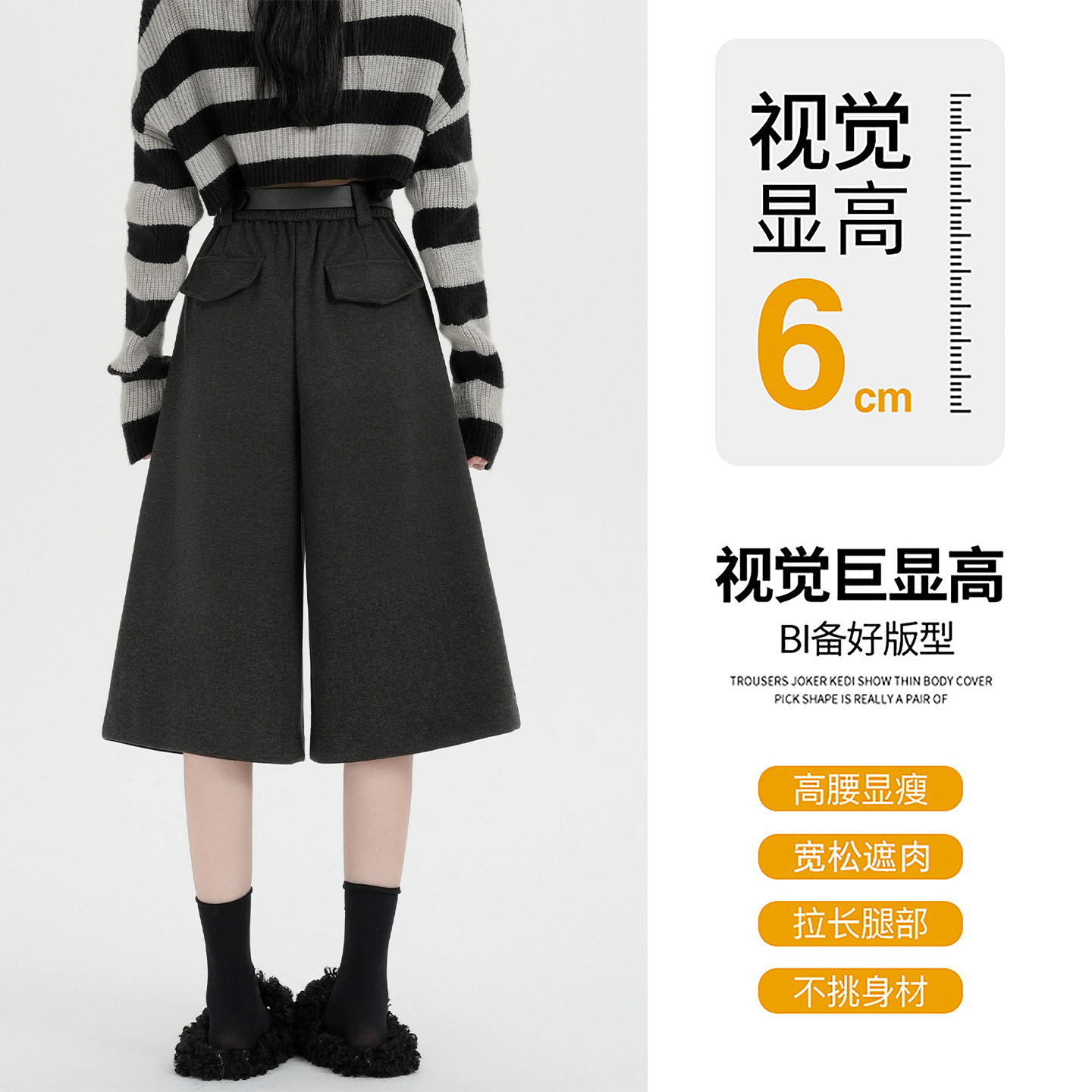 秋冬季加厚高腰外穿毛呢七分裤子