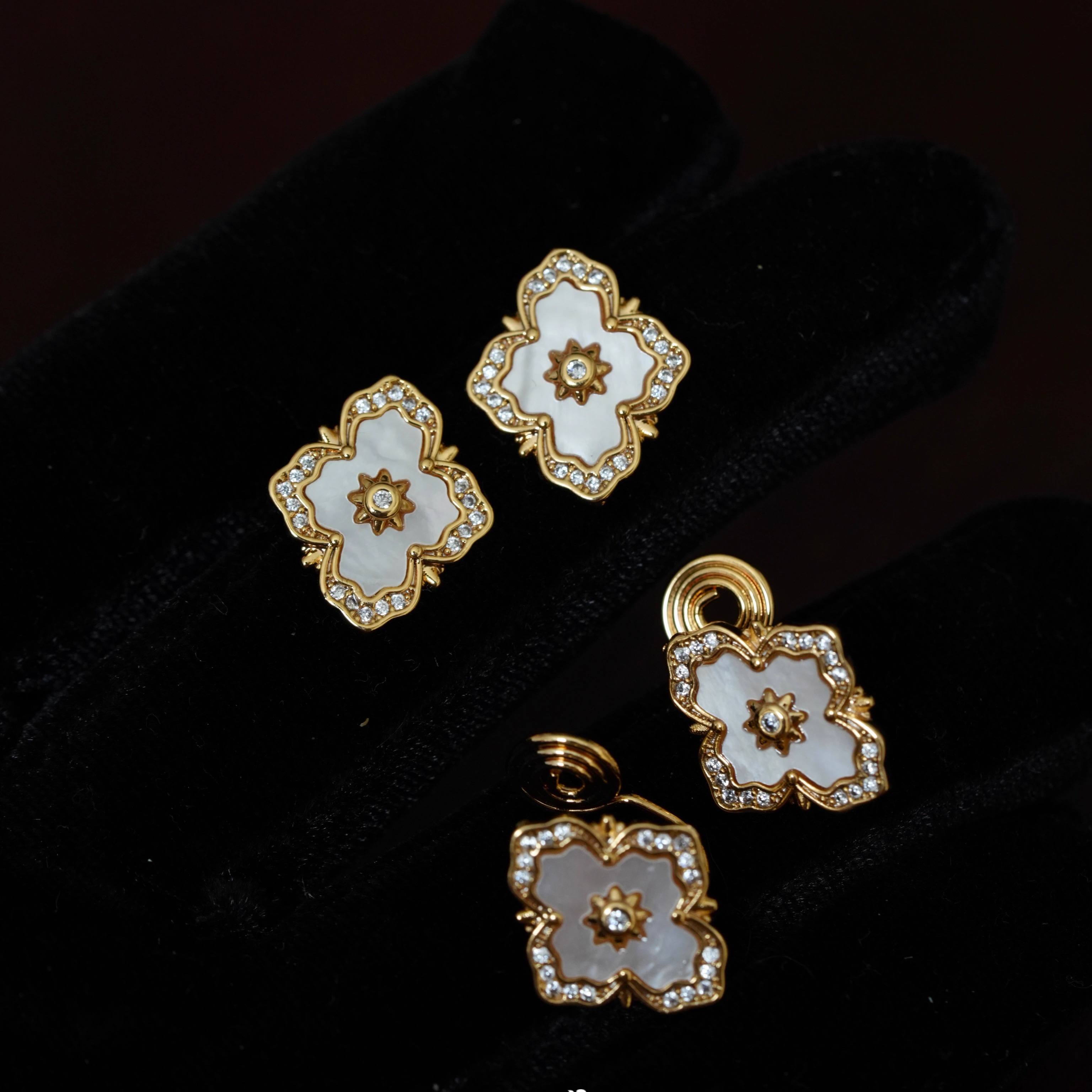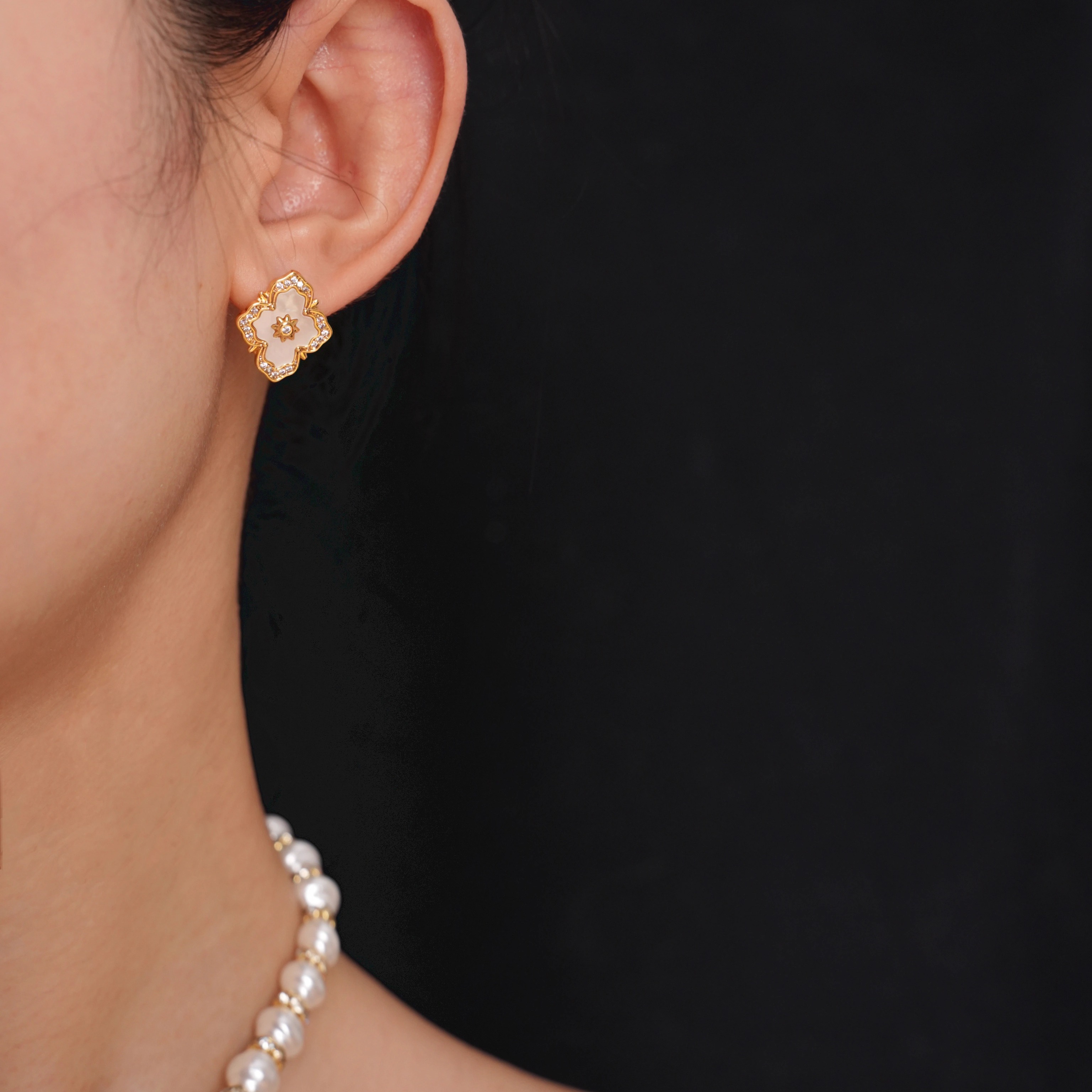 「中世纪之旅」法式宫廷复古罗马高级感百搭天然白贝母耳钉/耳夹