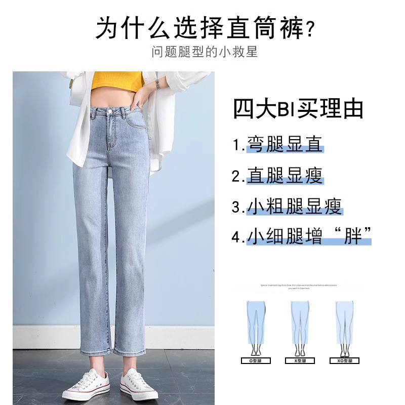 浅色直筒牛仔裤女夏2025新款高腰修身显瘦法棍裤九分小个子烟管裤
