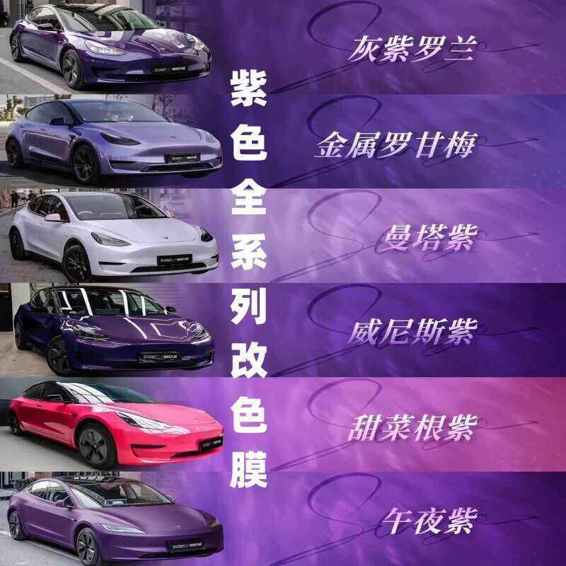 汽车改色膜全国包施工贴膜紫色全系列全车整车改色霞光紫迷雾灰紫