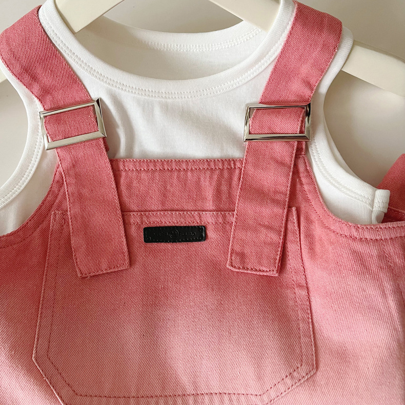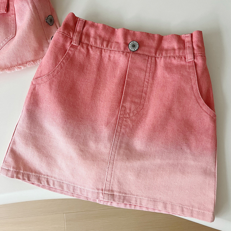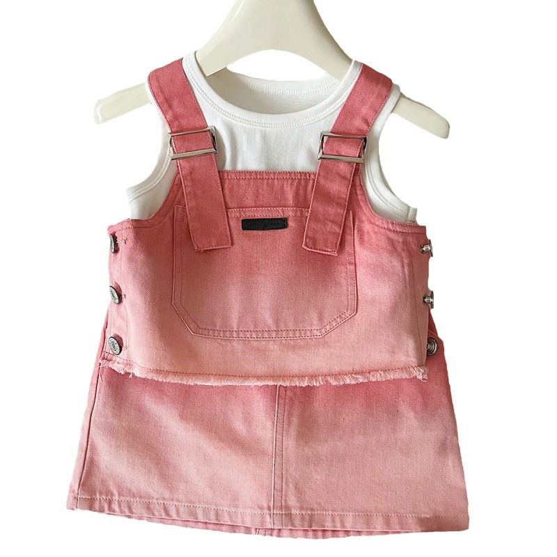 夏小女孩儿童辣妹渐变粉色薄款软牛仔背心吊带马甲半身裙三件套装