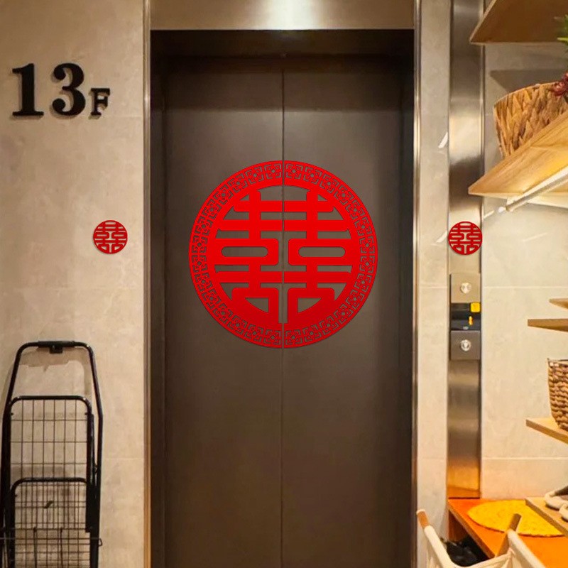 结婚电梯门贴纸喜字专用告示贴喜糖订婚礼双开门贴婚庆用品囍字贴