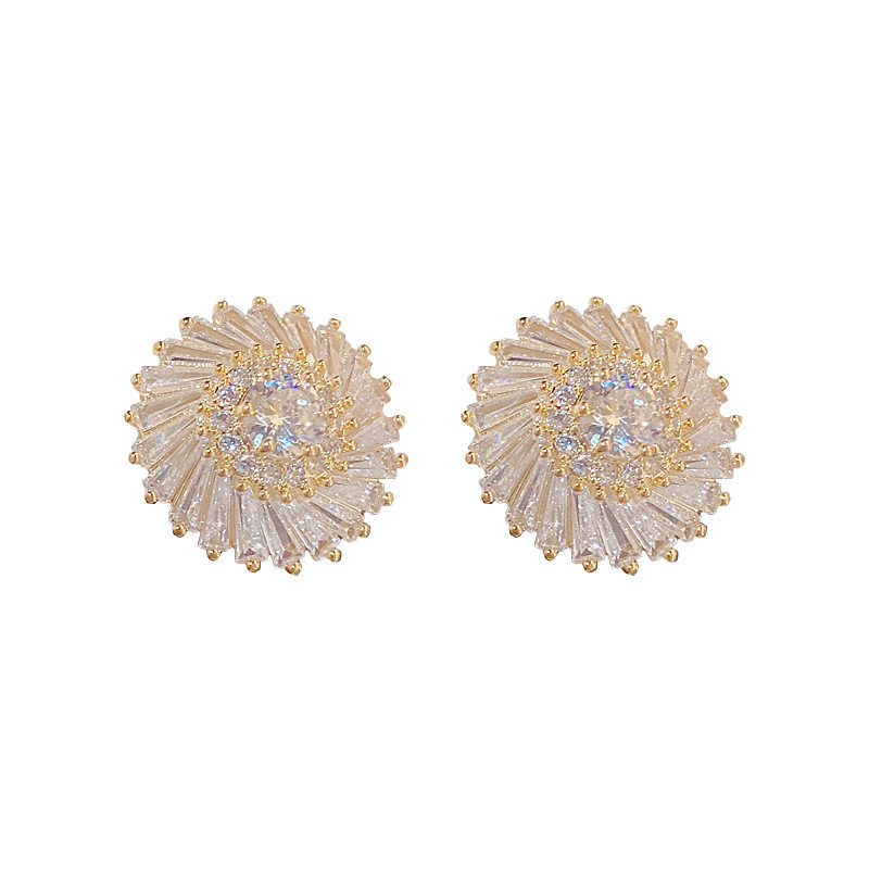 锆石花朵耳钉2025新款潮网红耳环气质女韩国超闪s925纯银银针耳饰