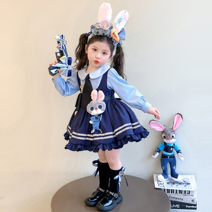女童兔子警官朱迪cos服装女孩洛丽塔公主裙迪士尼穿搭加绒连衣裙