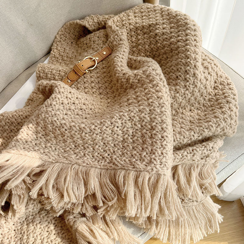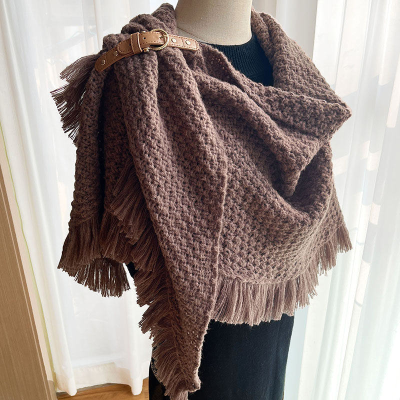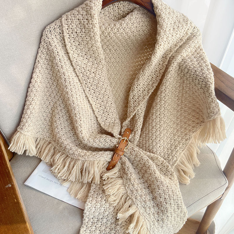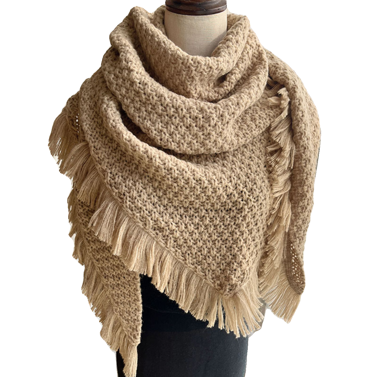 针织披肩秋冬保暖三角流苏毛线围巾仿羊绒休闲旅游御寒斗篷外搭