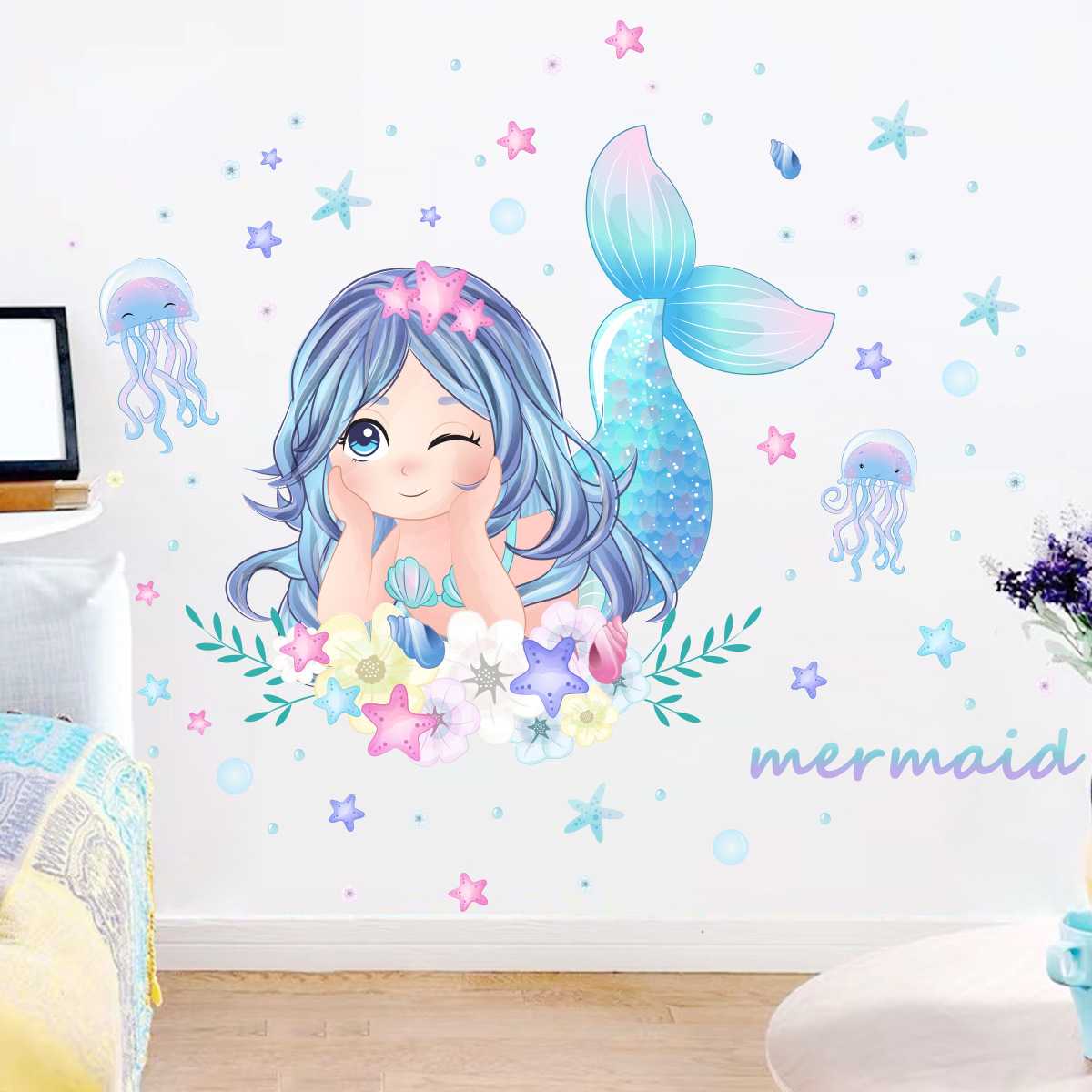 新款直销卡通可爱美人鱼自粘墙贴童话ins风儿童房间幼儿园装饰贴
