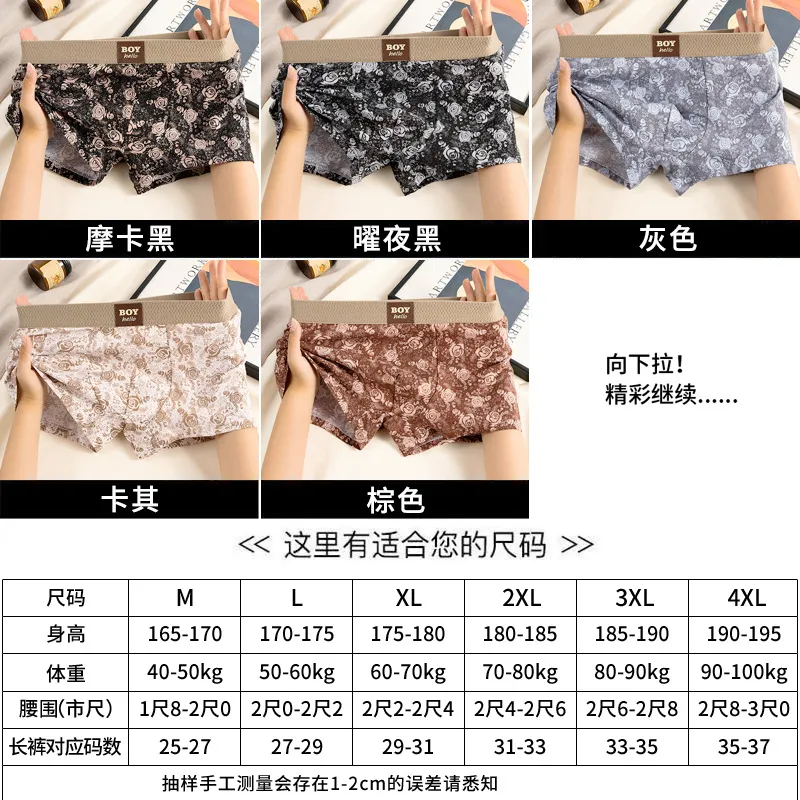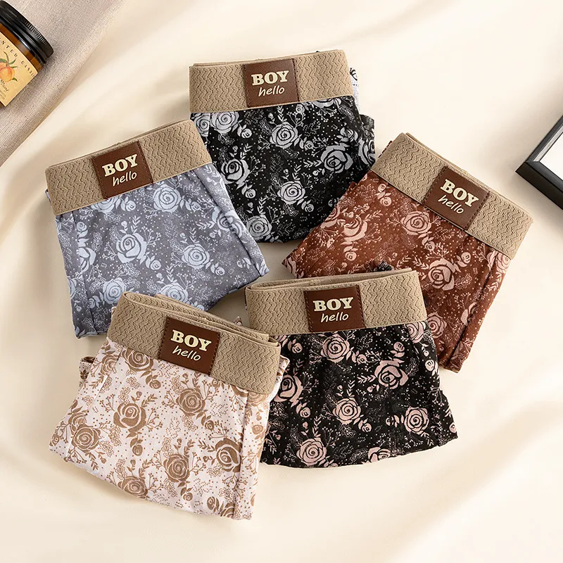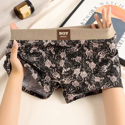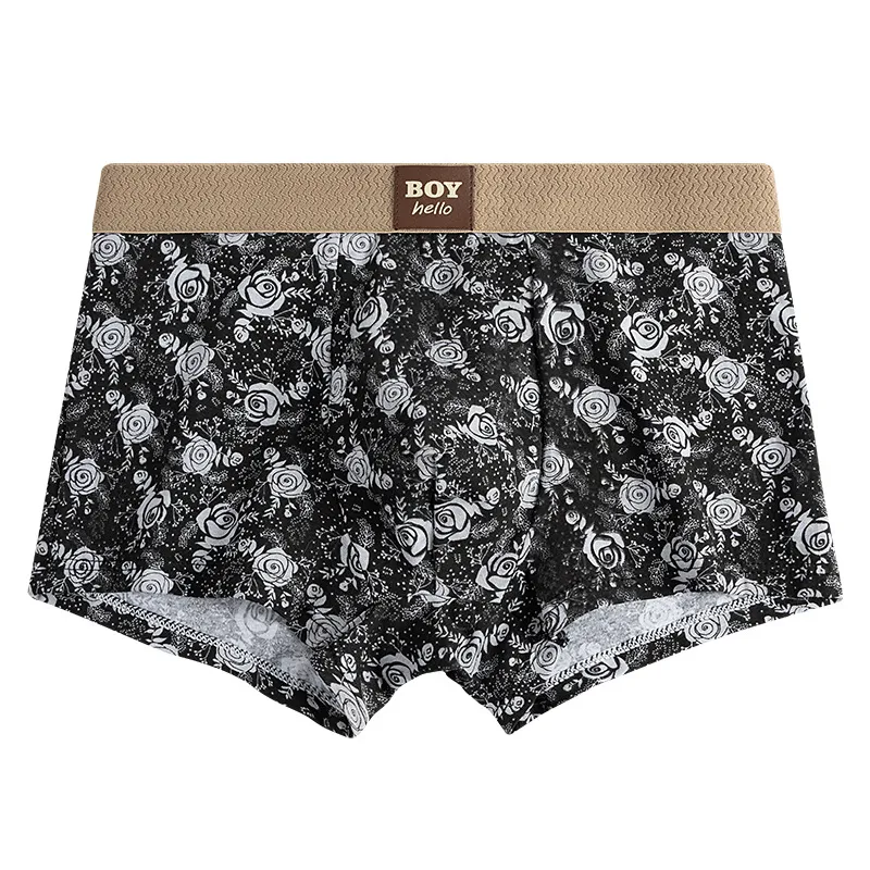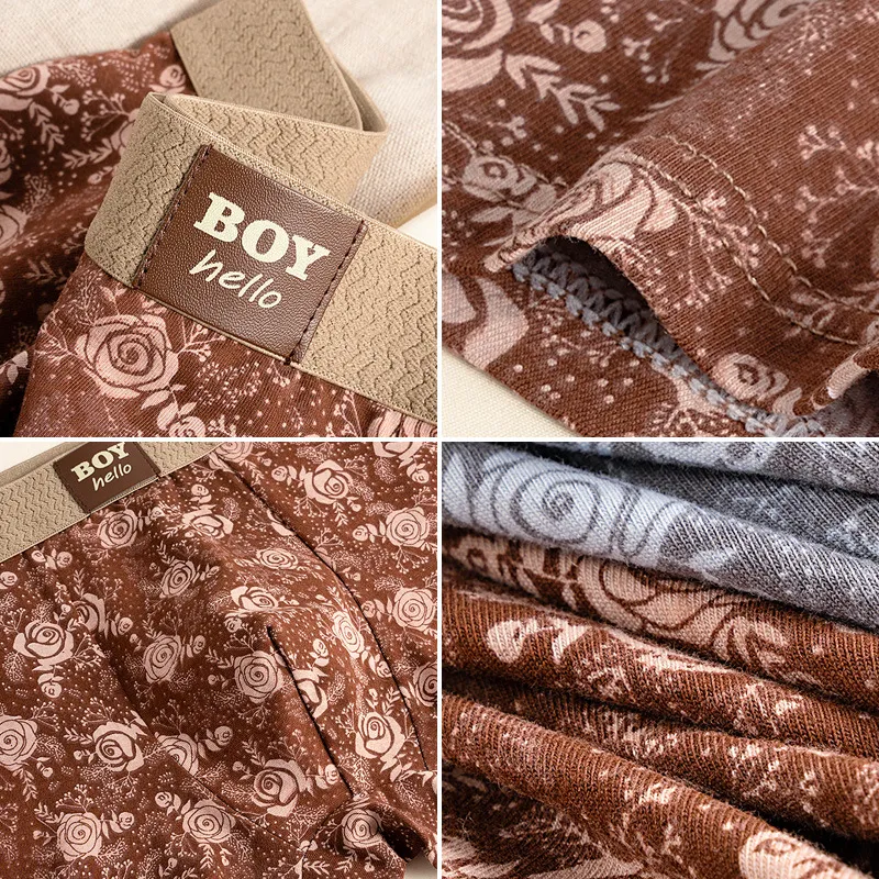 古典玫瑰印花男士内裤男款纯棉四角裤平角裤青年潮流个性复古短裤