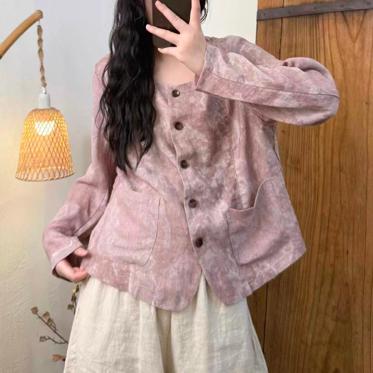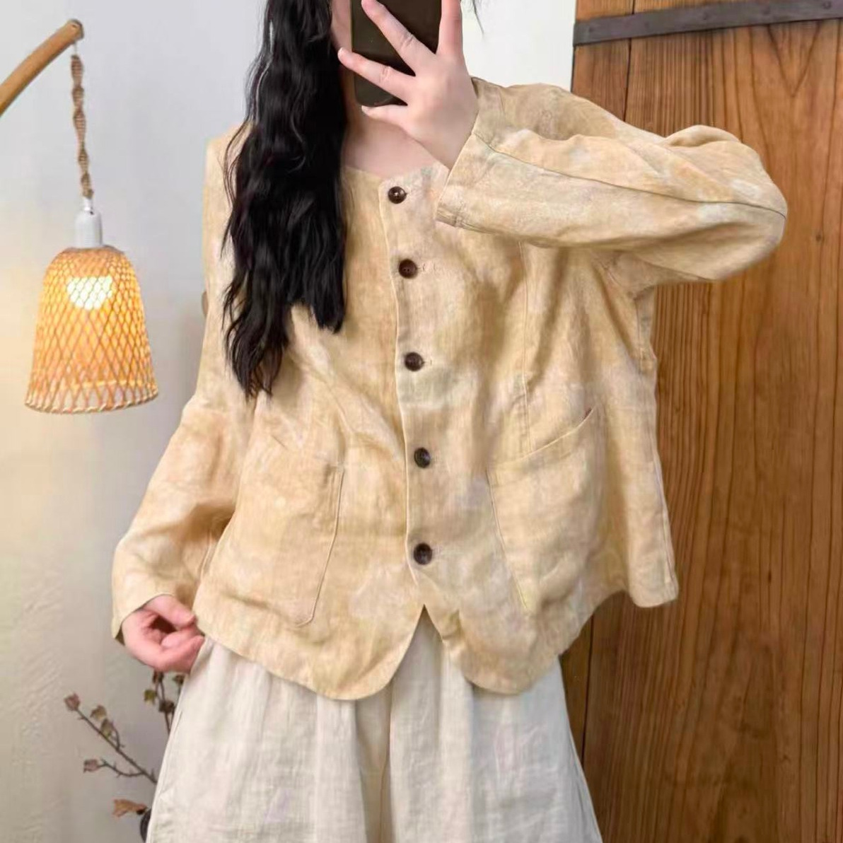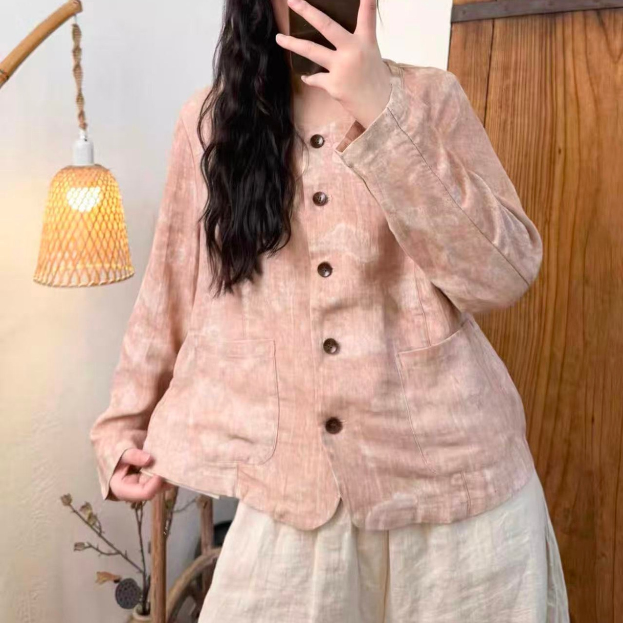 渲染印花苎麻莱赛尔单排扣休闲文艺复古宽松百搭显瘦时尚外套C15