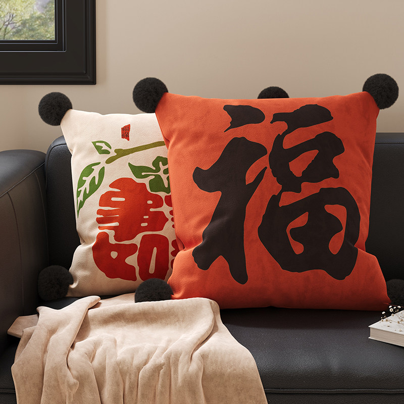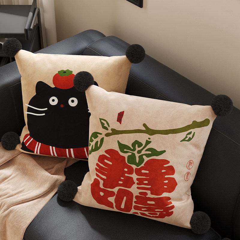 柿柿如意抱枕喜庆客厅沙发靠背垫含芯新年卧室靠枕高级感飘窗靠垫