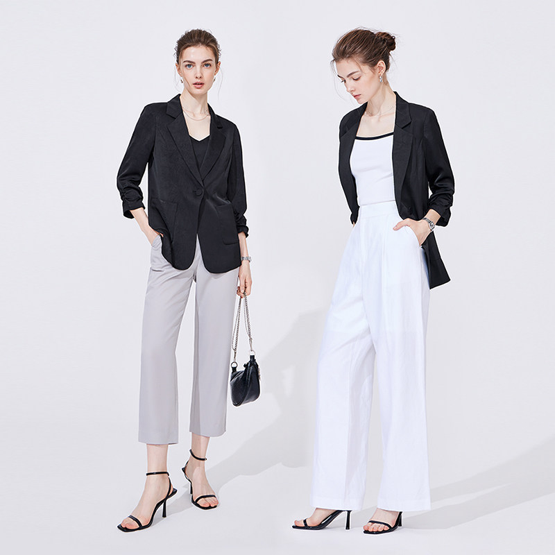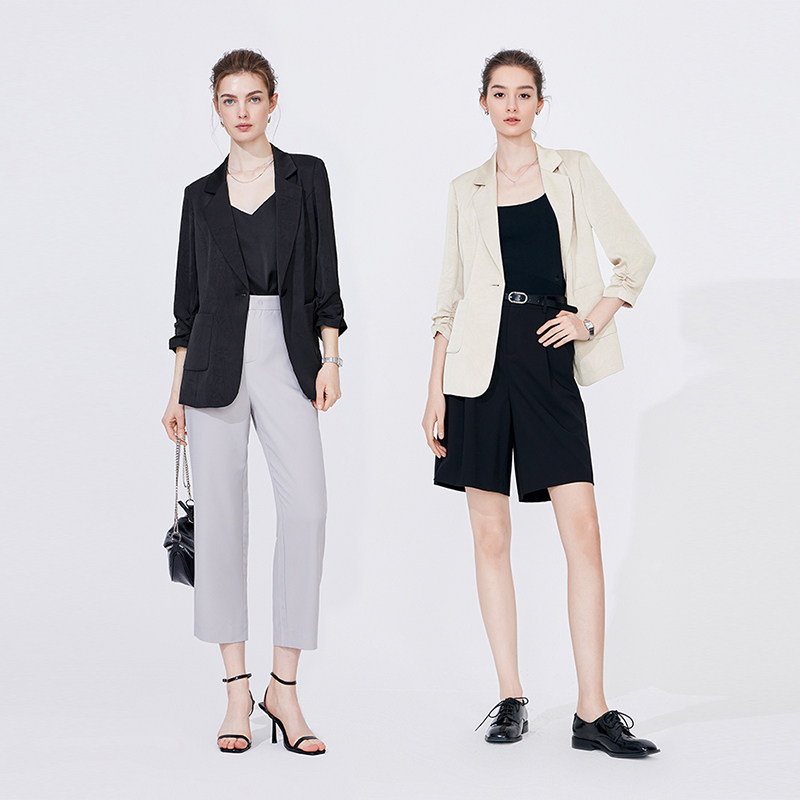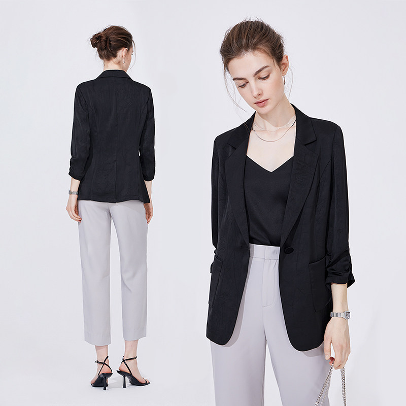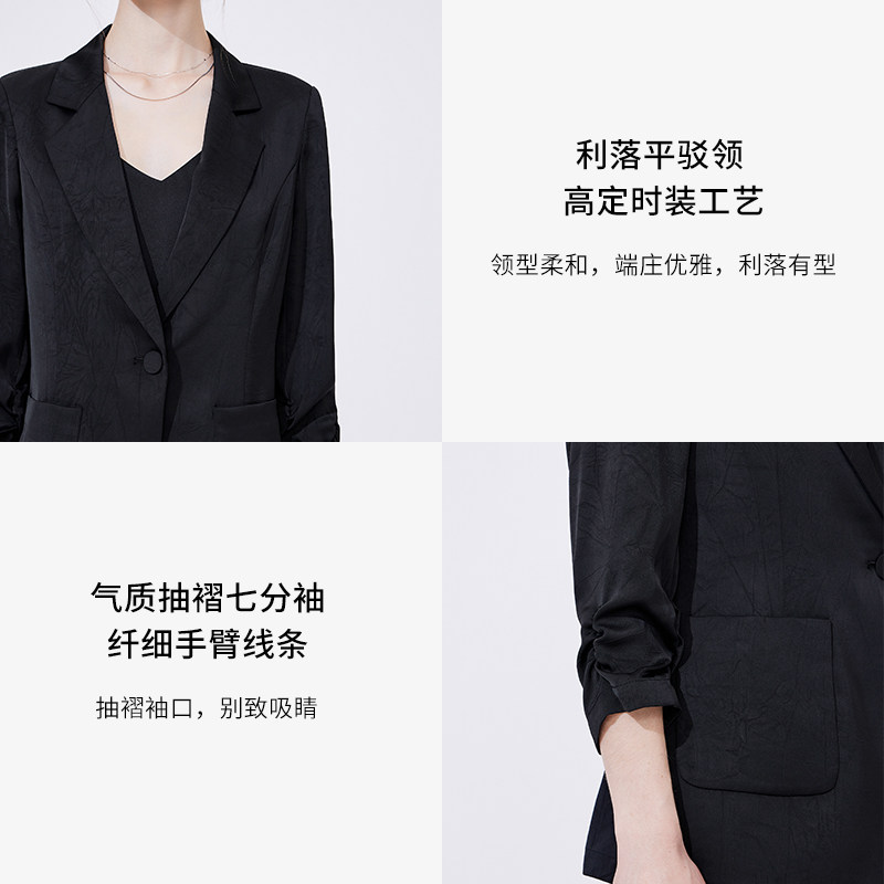 Navigare意大利小帆船黑色修身女西服25秋季新款七分袖百搭小西装
