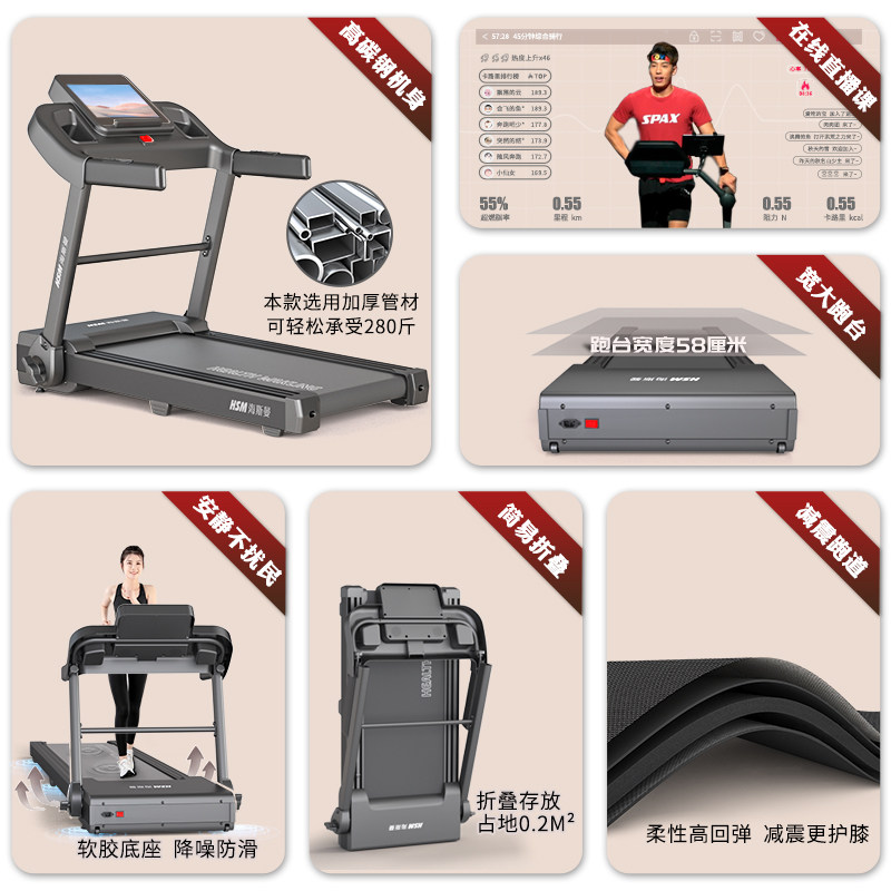 海斯曼MT28跑步机小型家用多功能静音可折叠室内智能健身房专用