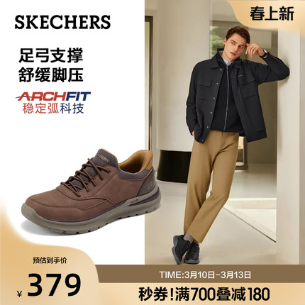 斯凯奇闪穿鞋春季商务休闲男鞋一脚蹬通勤鞋足弓支撑运动皮鞋