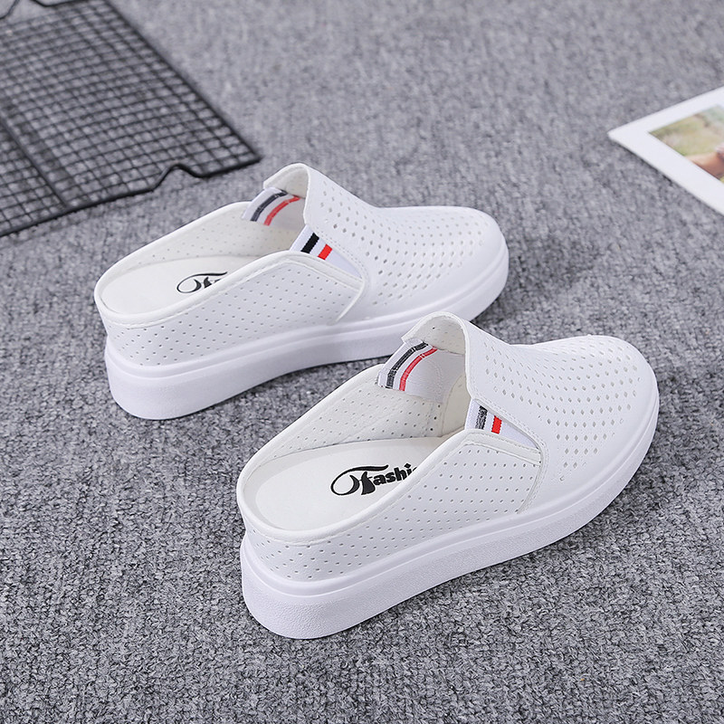 春夏新款无后跟懒人鞋女高跟凉拖鞋松糕跟厚底包头半拖鞋外穿拖鞋