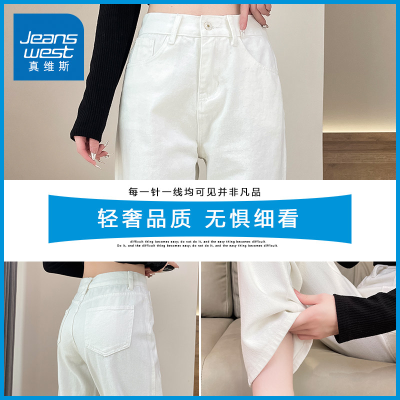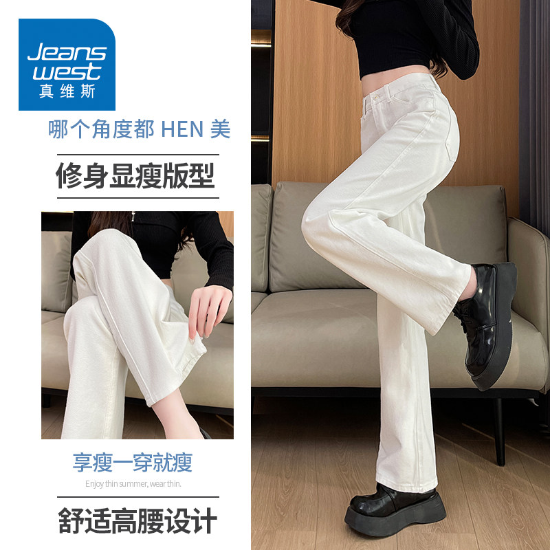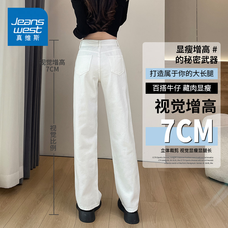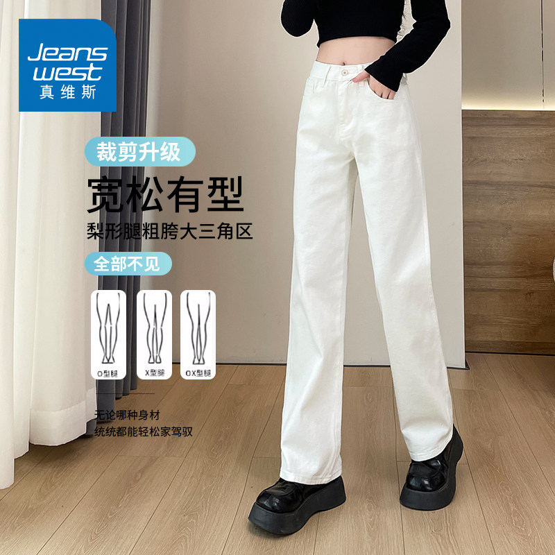KZH真维斯白色牛仔裤女秋冬新款宽松直筒阔腿裤高腰显瘦垂感长裤