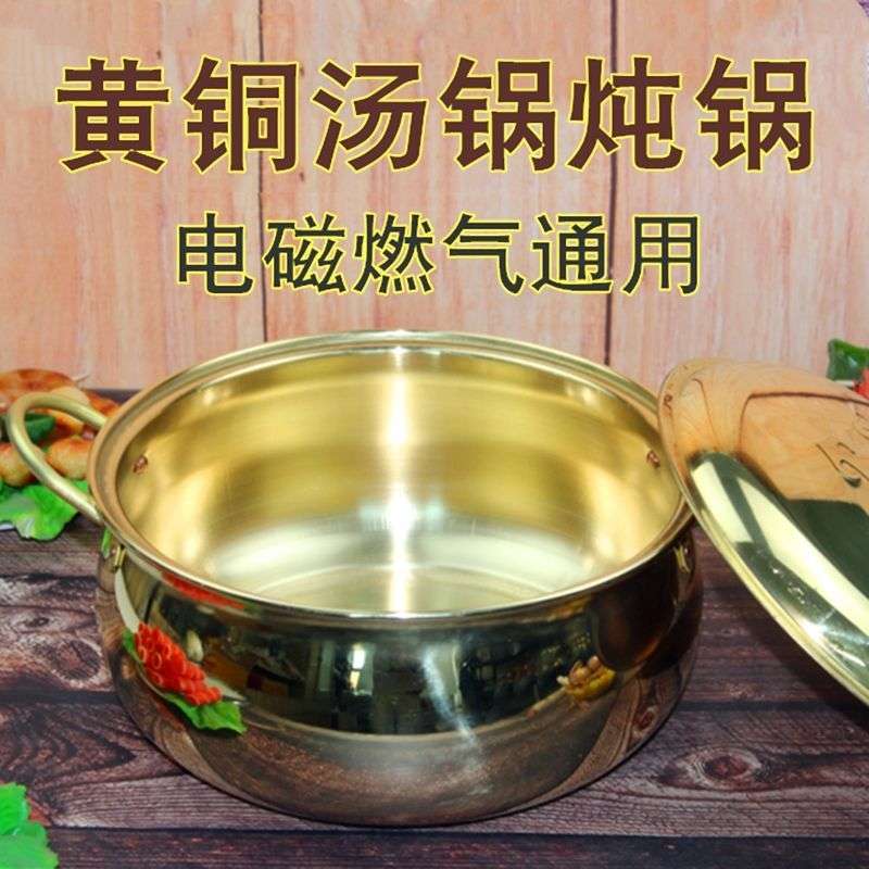黄铜汤锅炖锅燃气锅麻辣烫锅涮煮熬汤熬药串串锅炖菜炖肉铜锅加厚